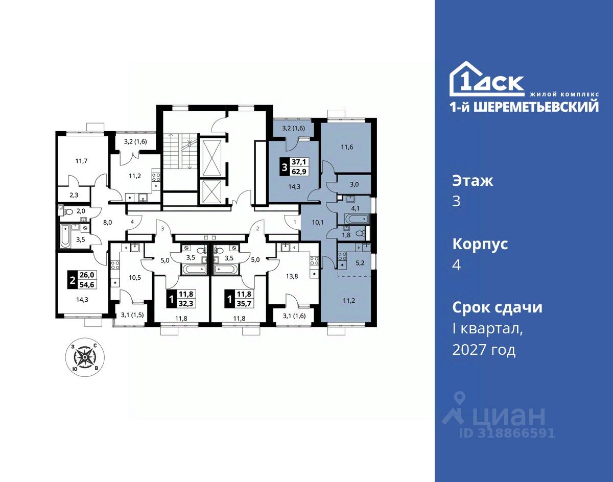 Общая площадь62,9 м2