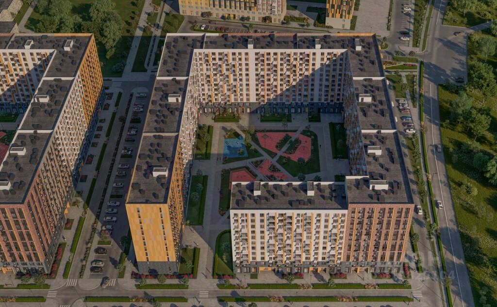Инфраструктура уже развита: рядом есть детский сад, строятся две школы и ещё три детских сада, а также поликлиника. В первых этажах откроются магазины, пекарни и кафе. Двор — безопасное, тихое зеленое пространство с зонами отдыха, детскими площадками и цветниками.